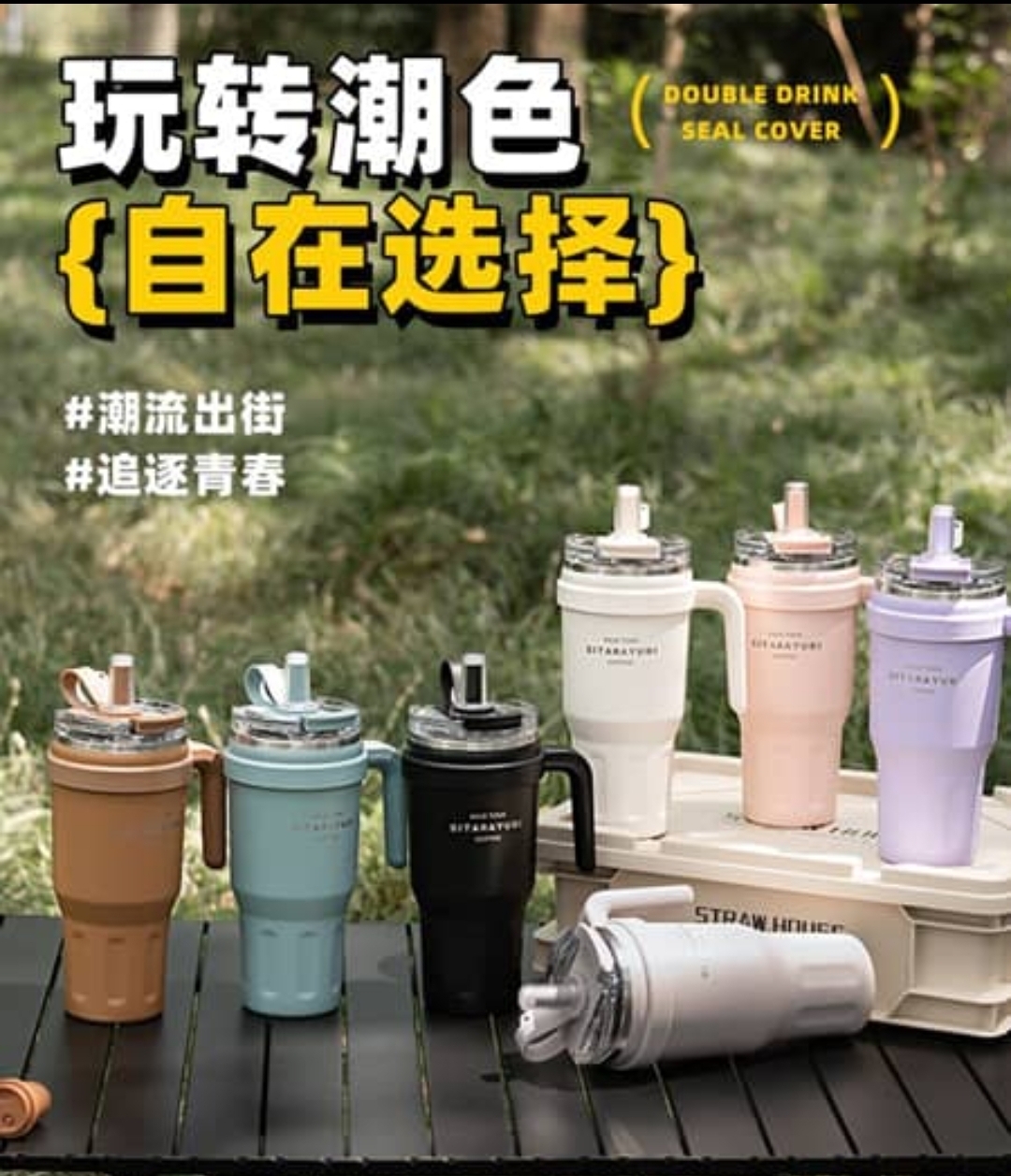 تراول ماگ تامبلر دسته دار 1100 میل سیتارایوری نی دار به همراه آسان نوش کد 038