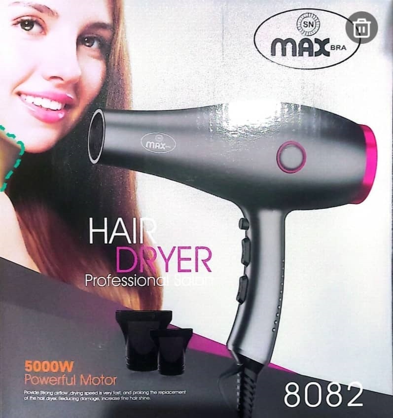 سشوار Max 8082 با توان 5000 وات و طراحی حرفه‌ای خود، موهای شما را در کمترین زمان خشک و خوش‌حالت می‌کند. ترکیب قدرت، ظرافت و کارایی، این مدل را به گزینه‌ای عالی برای استفاده روزمره تبدیل کرده است.