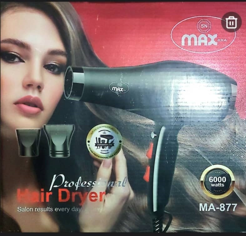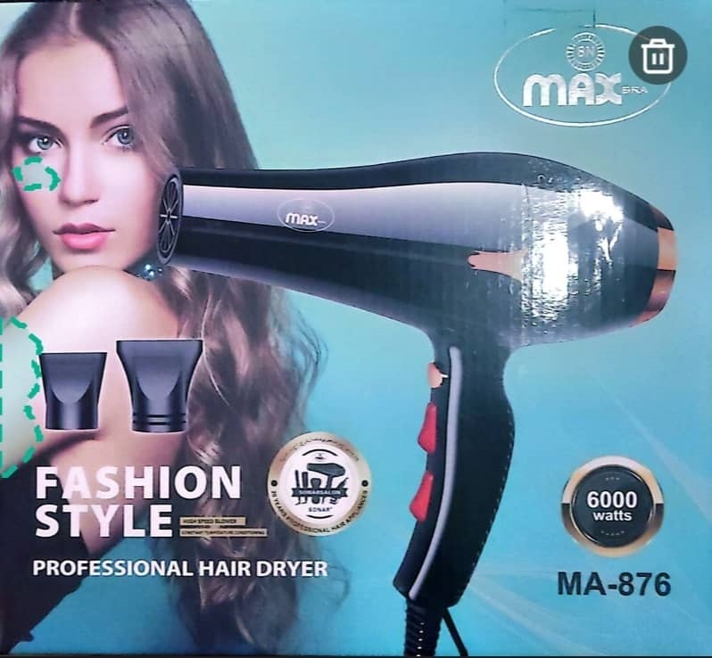 سشوار حرفه‌ای Max MA-876 با موتور قدرتمند 6000 وات، انتخابی ایده‌آل برای افرادی است که به سرعت، کیفیت و دوام اهمیت می‌دهند. طراحی ارگونومیک، بدنه مقاوم و عملکرد فوق‌العاده آن باعث می‌شود هم در خانه و هم در سالن‌های زیبایی بهترین نتیجه را بگیرید.