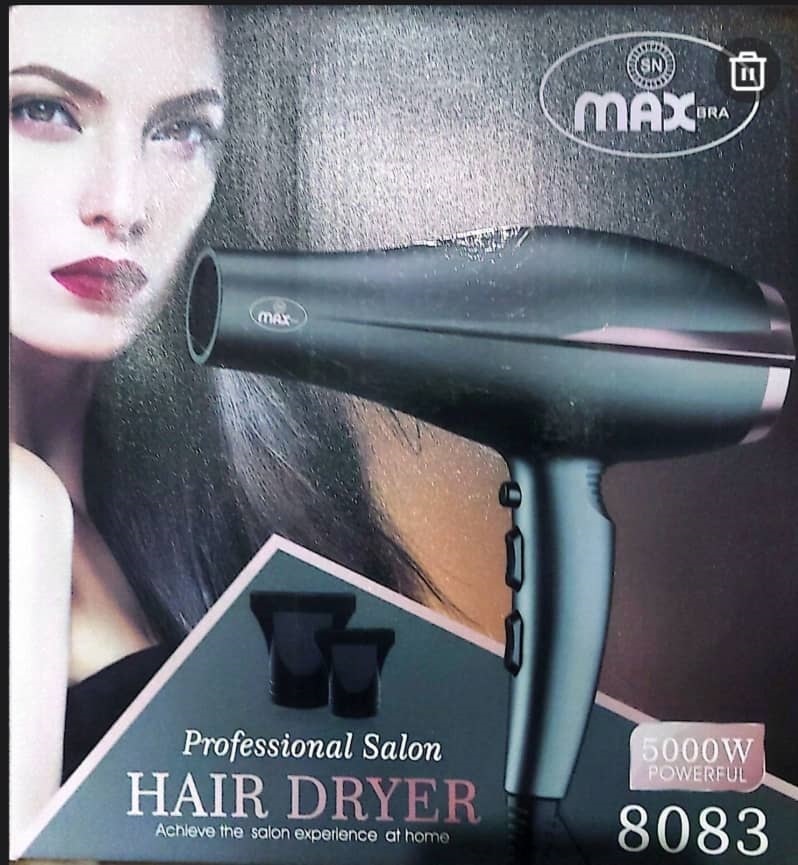 اگر به دنبال سشواری حرفه‌ای و با دوام هستید، Max 8083 پاسخ شماست. با توان 5000 وات واقعی و طراحی خاص، این دستگاه موها را سریع، یکدست و بدون وز خشک می‌کند.